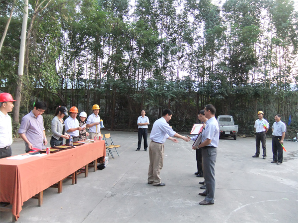 比賽共設(shè)三個(gè)項(xiàng)目:滅火器油盆滅火、油桶麻布滅火、消防水帶操作技能競(jìng)賽。公司領(lǐng)導(dǎo)對(duì)企業(yè)的消防安全工作高度重視,錢(qián)協(xié)理在本次活動(dòng)中任總指揮,王董事長(zhǎng)也親臨比賽現(xiàn)場(chǎng)觀摩指導(dǎo),為參賽員工助威與鼓勵(lì)。此外,區(qū)消防大隊(duì)領(lǐng)導(dǎo)、海滄區(qū)經(jīng)貿(mào)局領(lǐng)導(dǎo)也到賽場(chǎng)指導(dǎo),為我們本次比賽做了專(zhuān)業(yè)的點(diǎn)評(píng)。比賽現(xiàn)場(chǎng)氣氛高漲,參賽隊(duì)員一個(gè)個(gè)健步如飛,速度快的驚人,他們臨危不亂、勇猛而不失細(xì)節(jié)、個(gè)個(gè)訓(xùn)練有素、奮勇?tīng)?zhēng)先。而一旁觀摩的同仁們同樣“忙”得熱火朝天:吶喊聲、助威聲、歡呼聲一浪比一浪高。