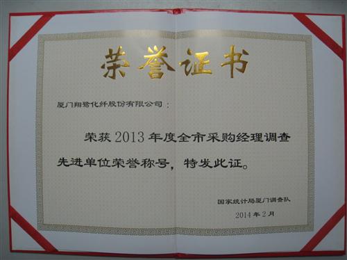 祝賀翔鷺化纖被授予“2013年度采購經(jīng)理調(diào)查先進單位”的榮譽稱號2013年度,國家統(tǒng)計局開展采購經(jīng)理(PMI)調(diào)查并進行多家參與評比,我司嚴(yán)格按照要求,認真、及時、準(zhǔn)確上報調(diào)查報表與分析材料,為政府部門提供了詳實的信息。 為此我司在2013年度,全省采購經(jīng)理調(diào)查工作進行考核評比中,被授予“2013年度采購經(jīng)理調(diào)查先進單位”的榮譽稱號。 今后,我司將繼續(xù)做到數(shù)據(jù)報送及時準(zhǔn)確,并堅持?jǐn)?shù)入一庫、數(shù)出一門、一數(shù)一源的統(tǒng)計原則,充分發(fā)揮統(tǒng)計工作在企業(yè)管理中的數(shù)據(jù)信息支撐作用。