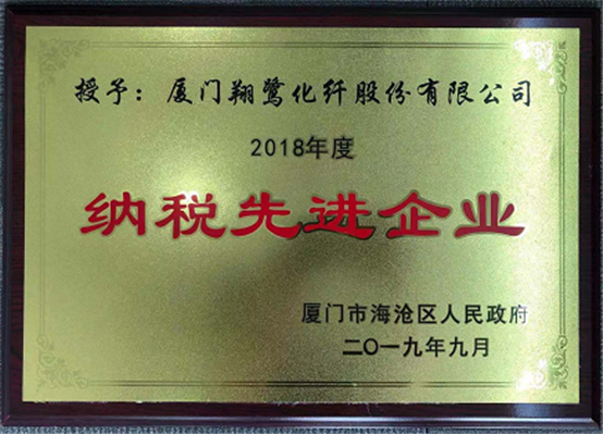 廈門翔鷺化纖股份有限公司榮獲“2018年度納稅先進(jìn)企業(yè)”