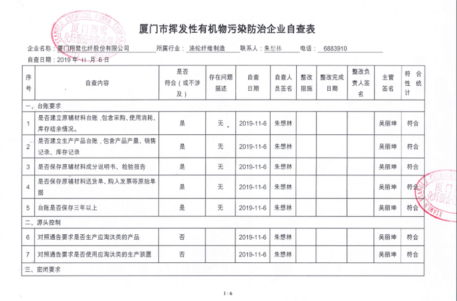 廈門市揮發(fā)性有機(jī)物污染防治企業(yè)自查表(2019年第四季度)