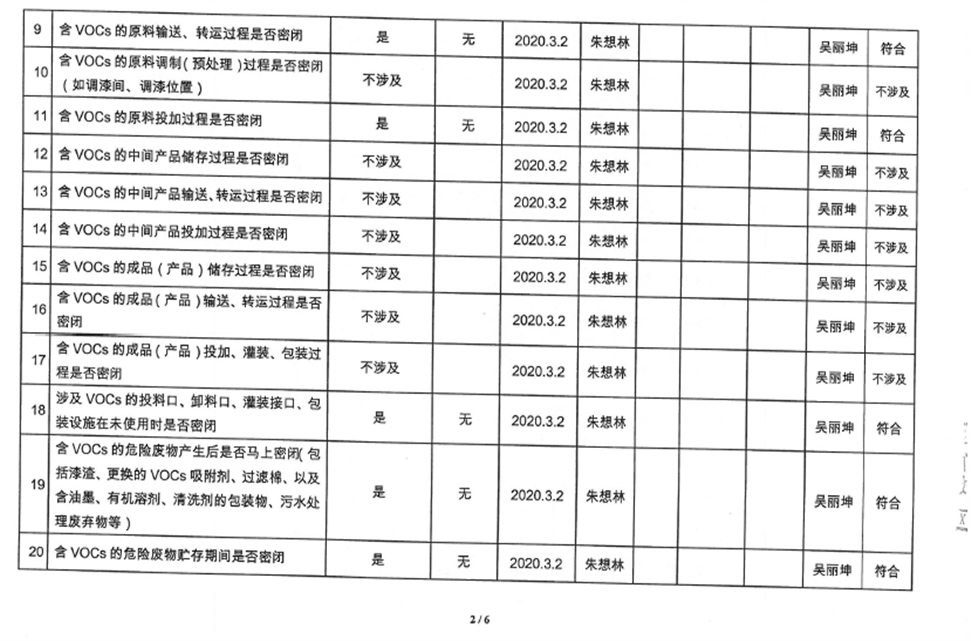 廈門(mén)市揮發(fā)性有機(jī)物污染防治企業(yè)自查表(2020年第二季度)