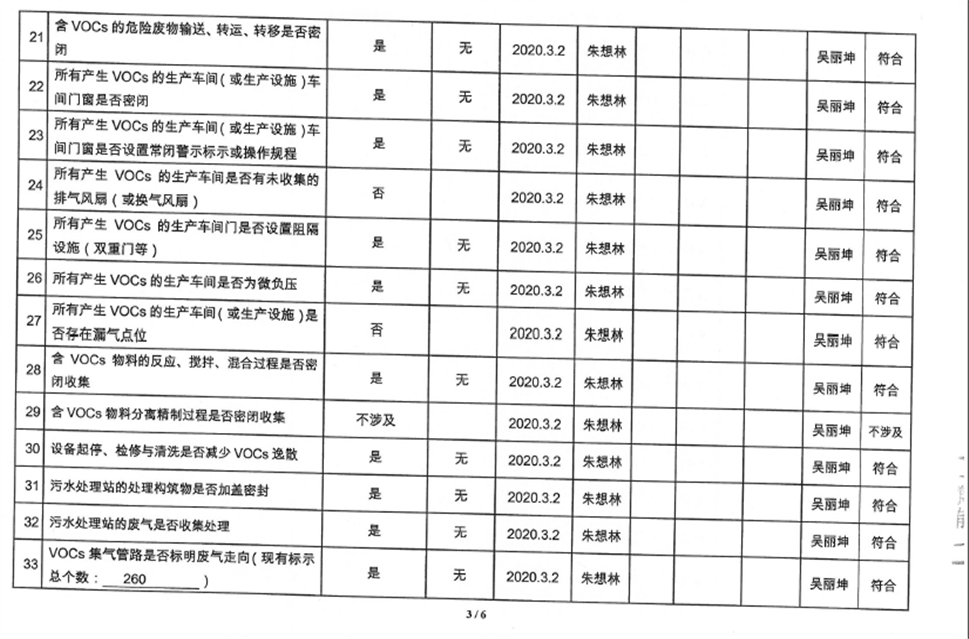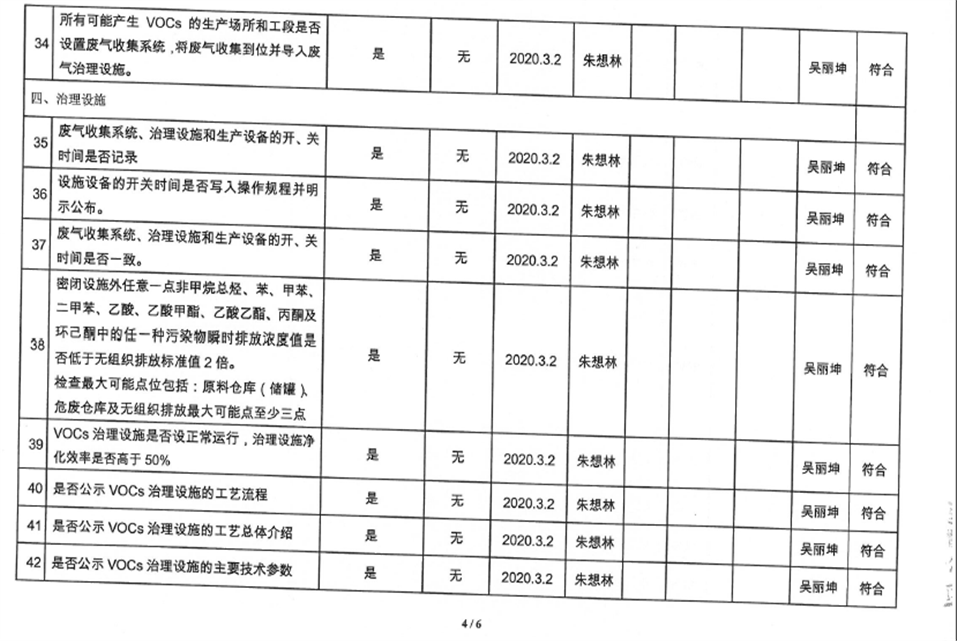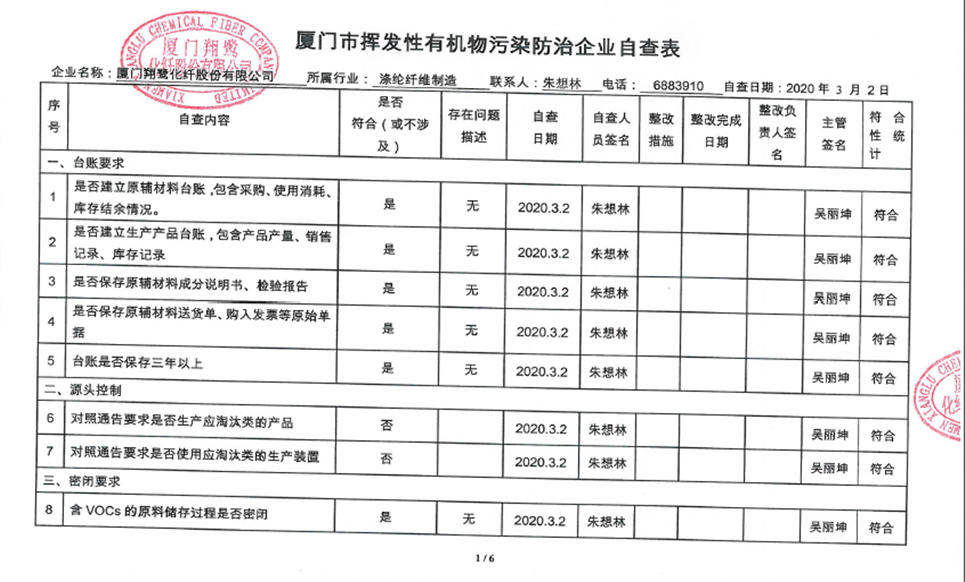 廈門(mén)市揮發(fā)性有機(jī)物污染防治企業(yè)自查表(2020年第一季度)