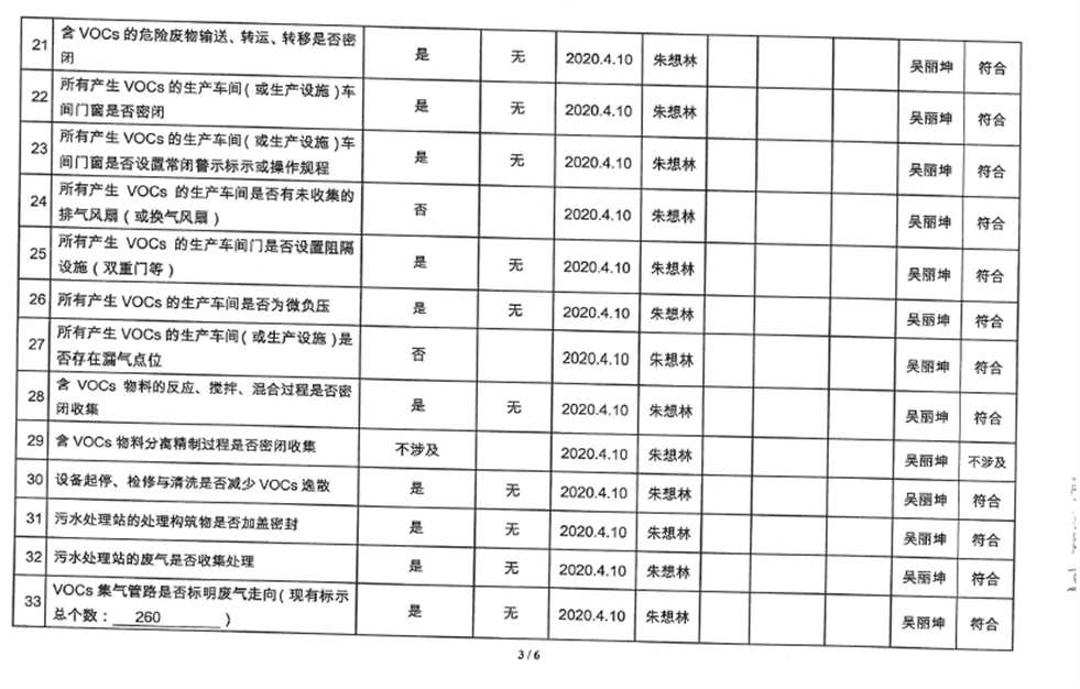 廈門市揮發(fā)性有機(jī)物污染防治企業(yè)自查表 (2020年 第三季度)